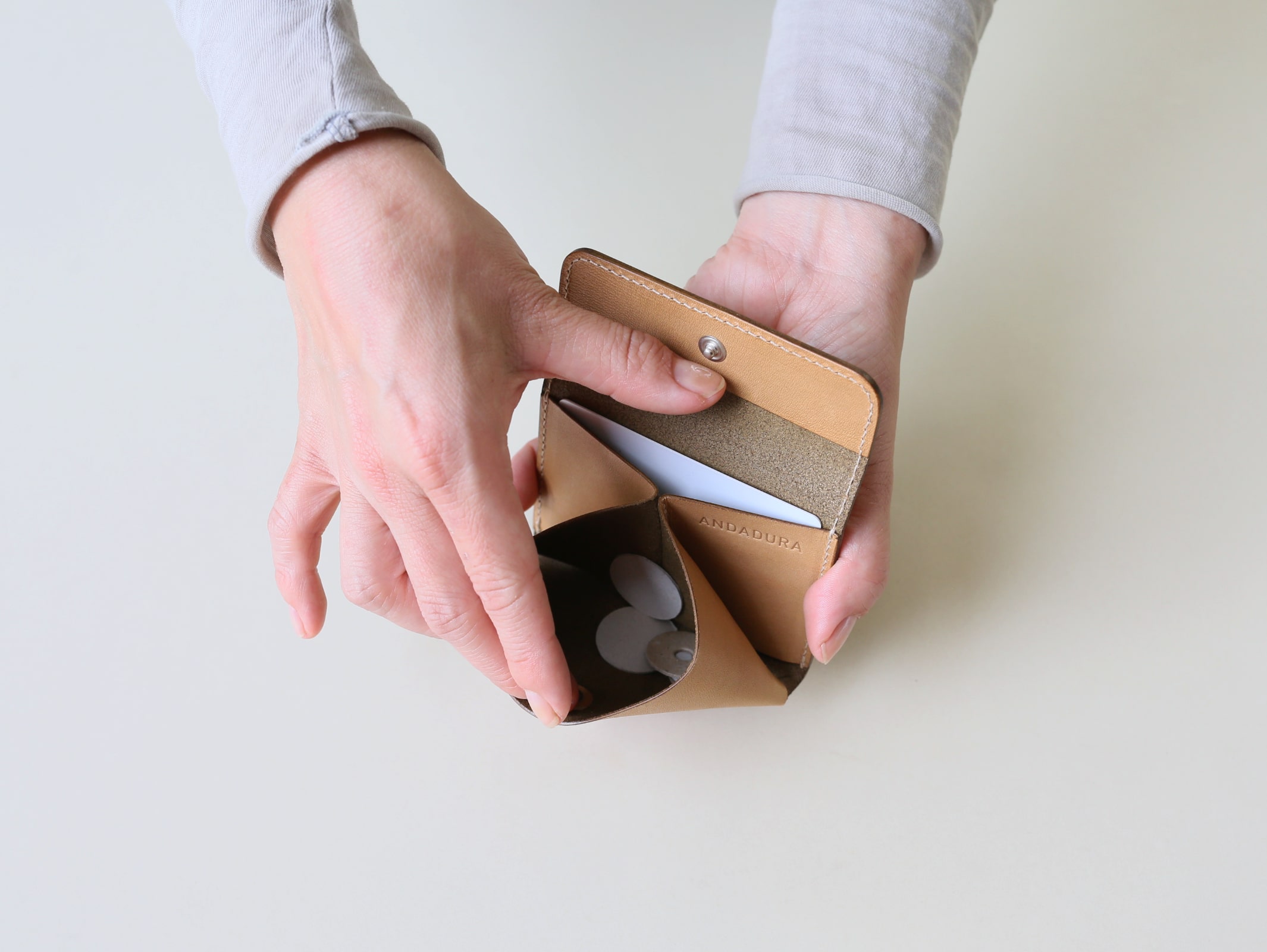 2つ折りにしたお札も収まります。(クルッとした巻きグセがつきます。)