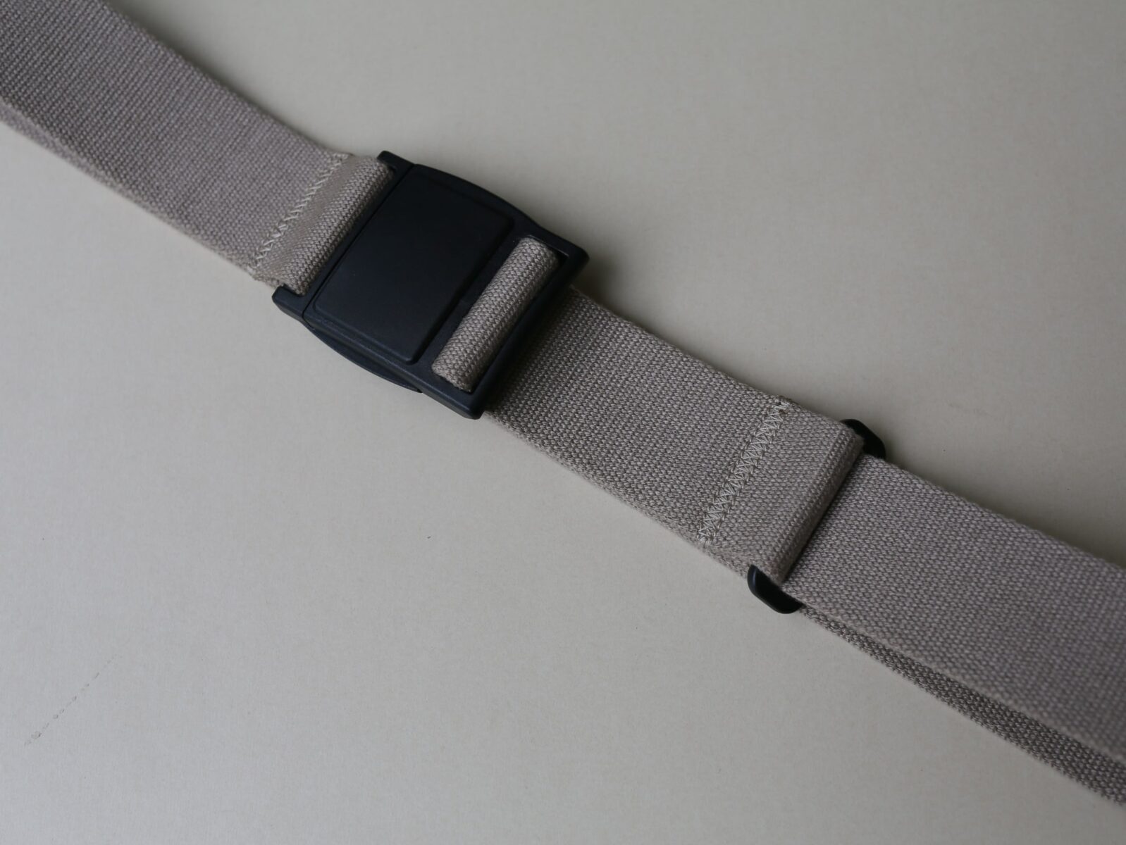 ベルトの端がピラピラしないように、角カンをつけて、本体と一体になるようにしました。