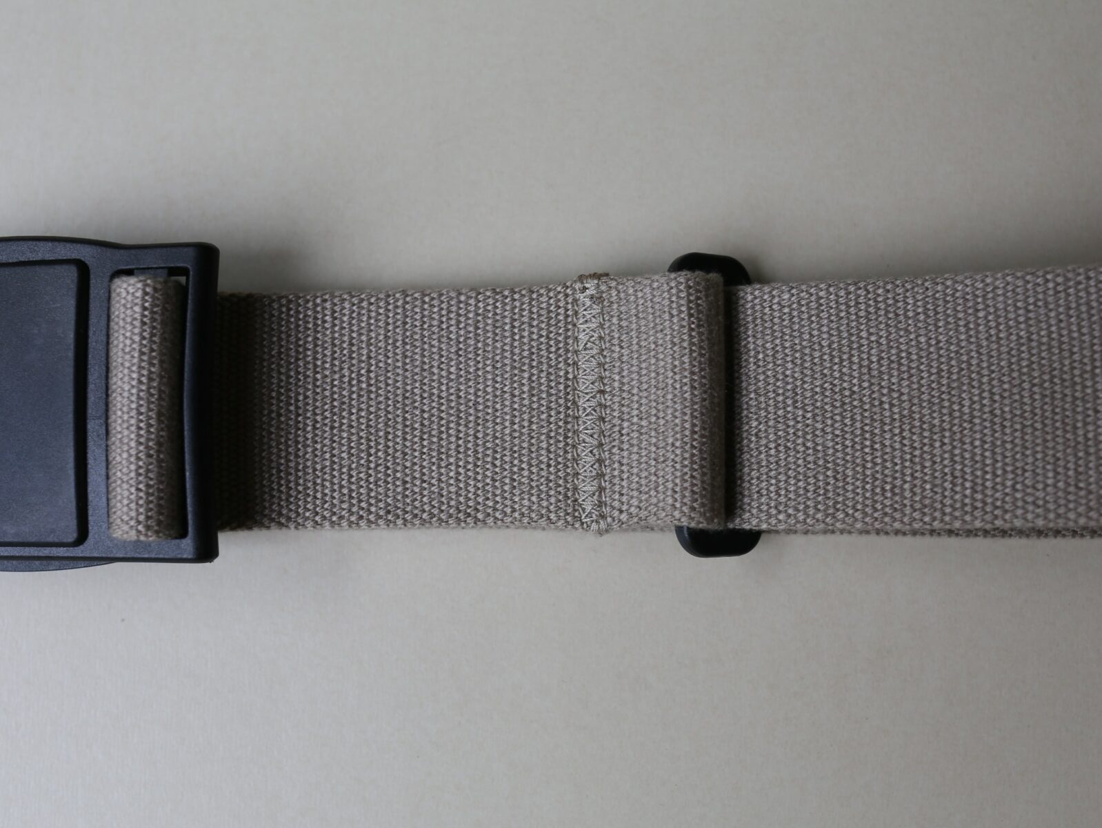 バックルとベルトテープの縫いは、段差をなるべく少なくするために、テープは折り返しはせず、通常のミシンで、ひと針ひと針カンヌキ縫いをしました。