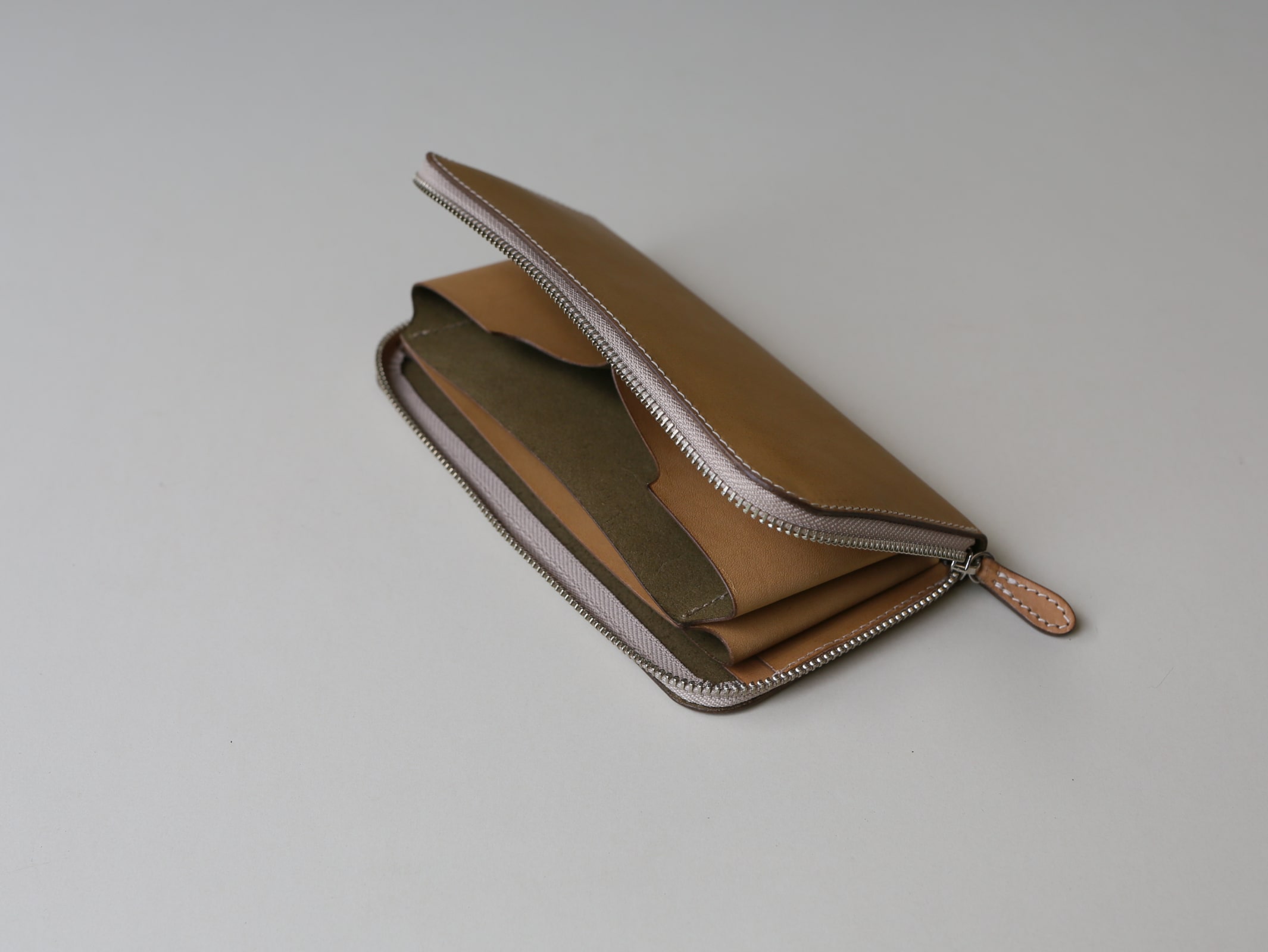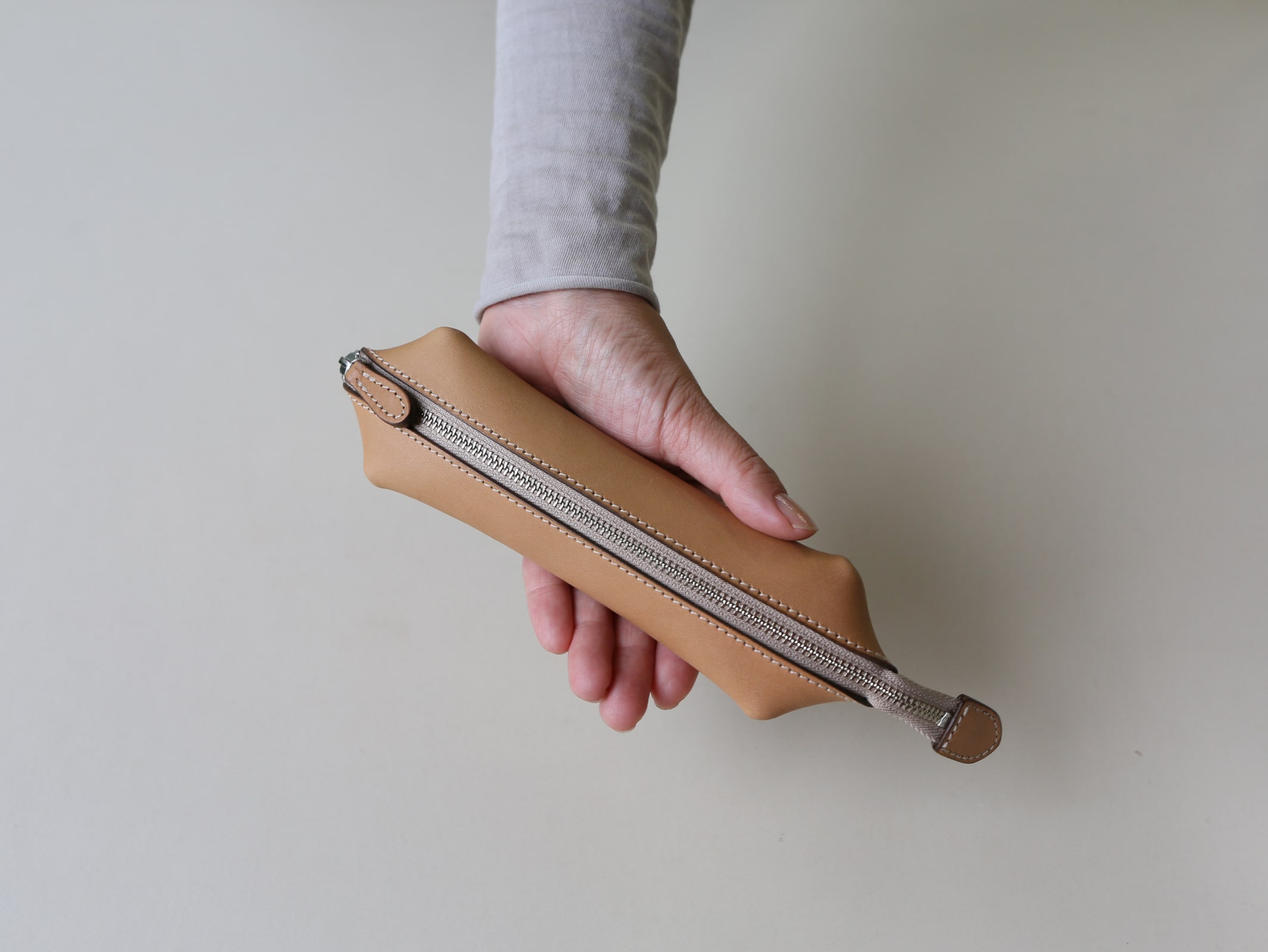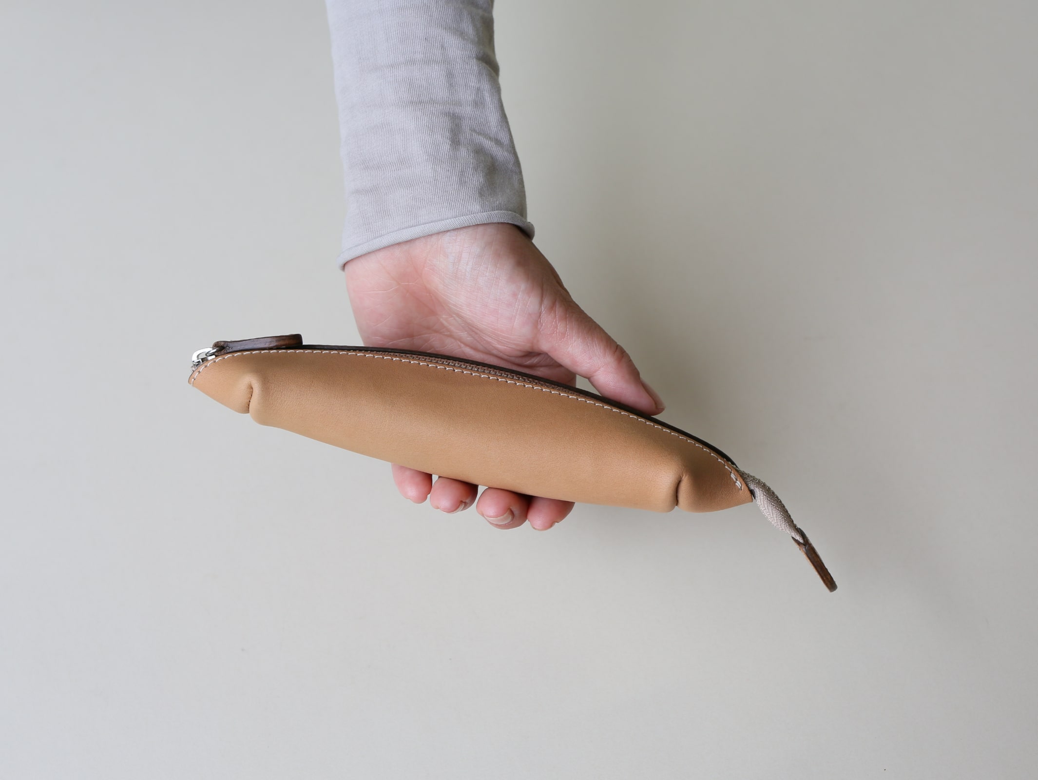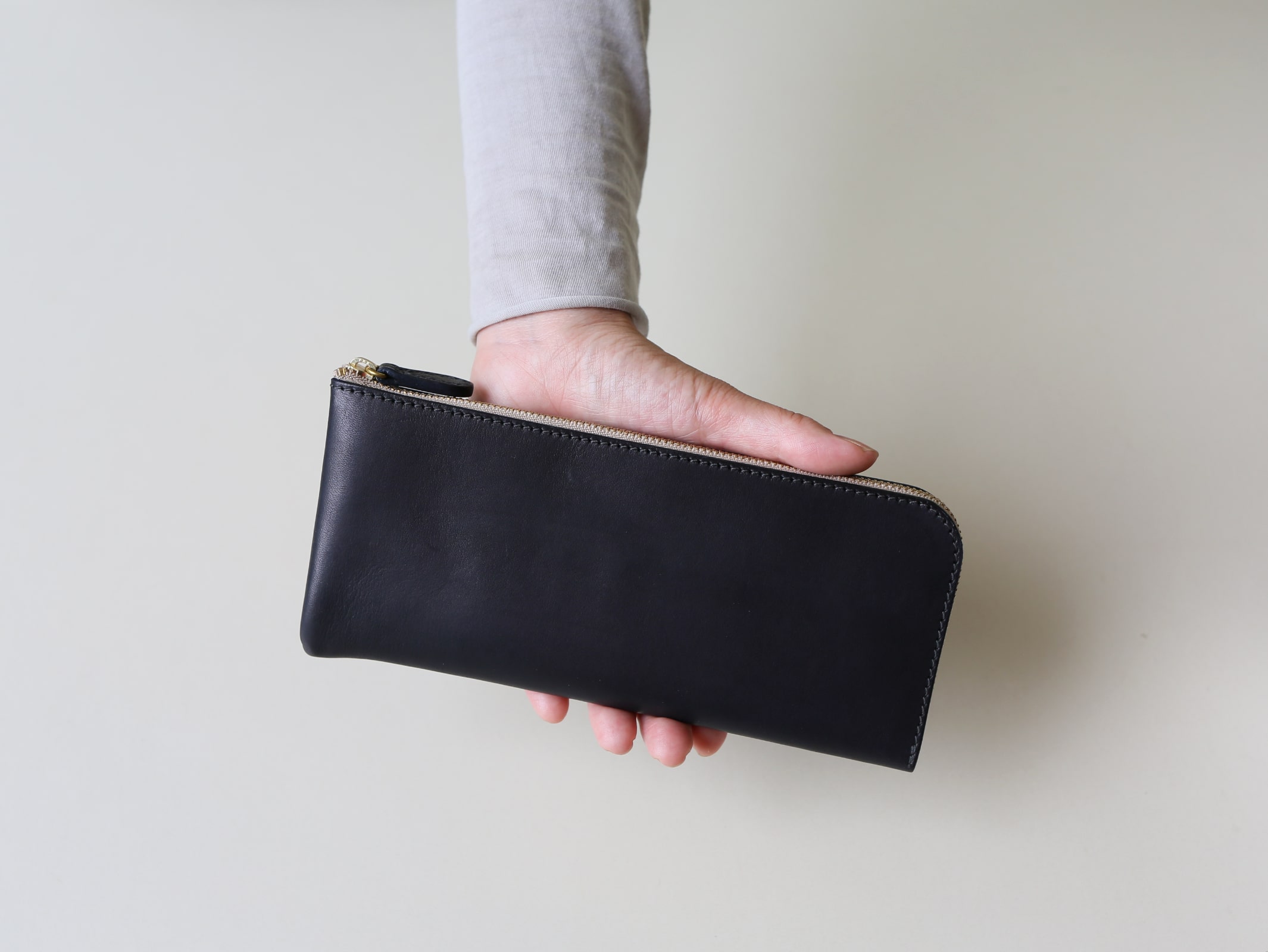 ANDADURAのファスナータイプのものは左右対象で、利き手に関係なく使うことができるのですが、LGW10を作る際、(僕が左利きですので)自分の使用感が参考にならないと思ったので、右利きの方に使ってもらいながら、使い心地を確認しました。