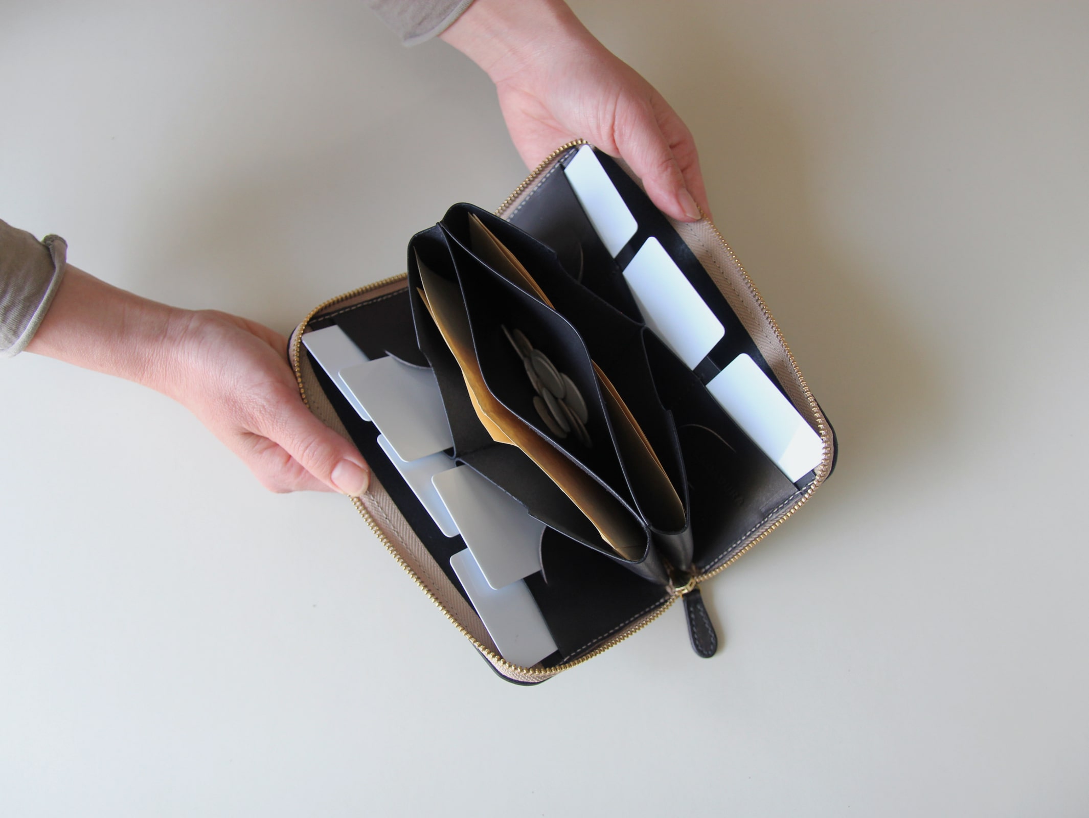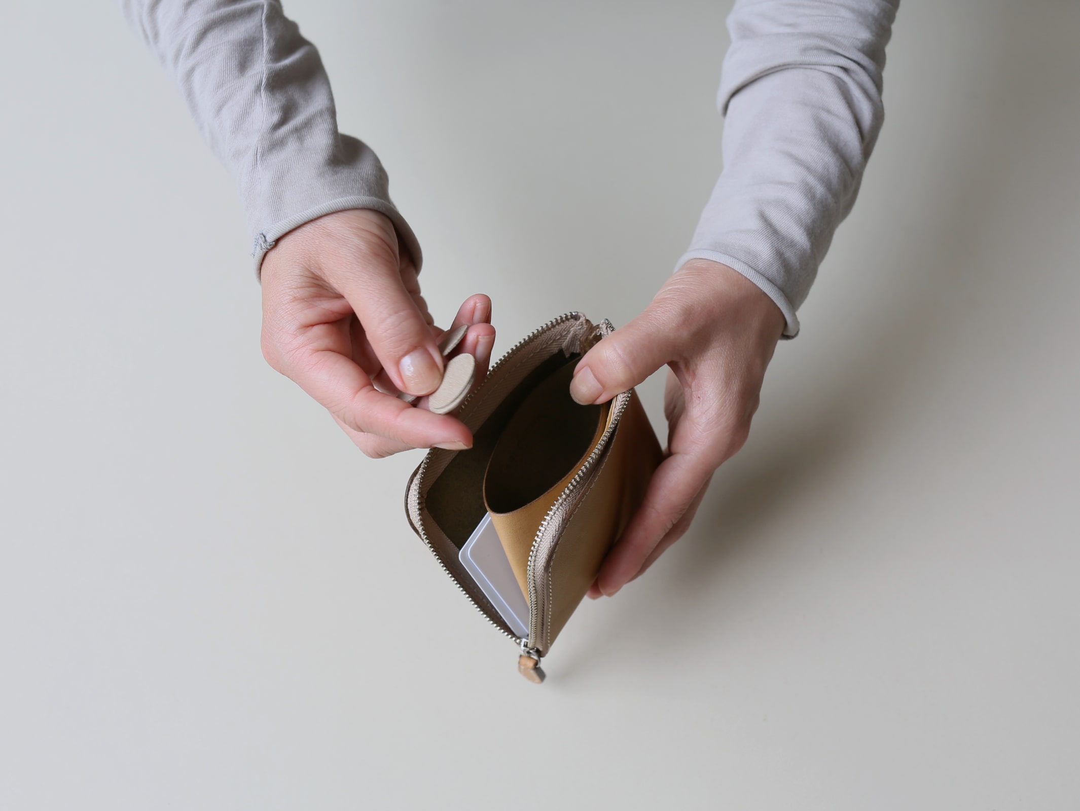 そうすると、右手がフリーになり、カード、小銭、お札にアクセスできます。