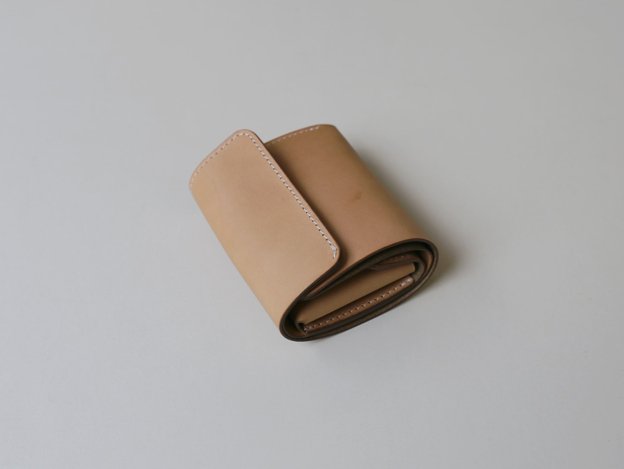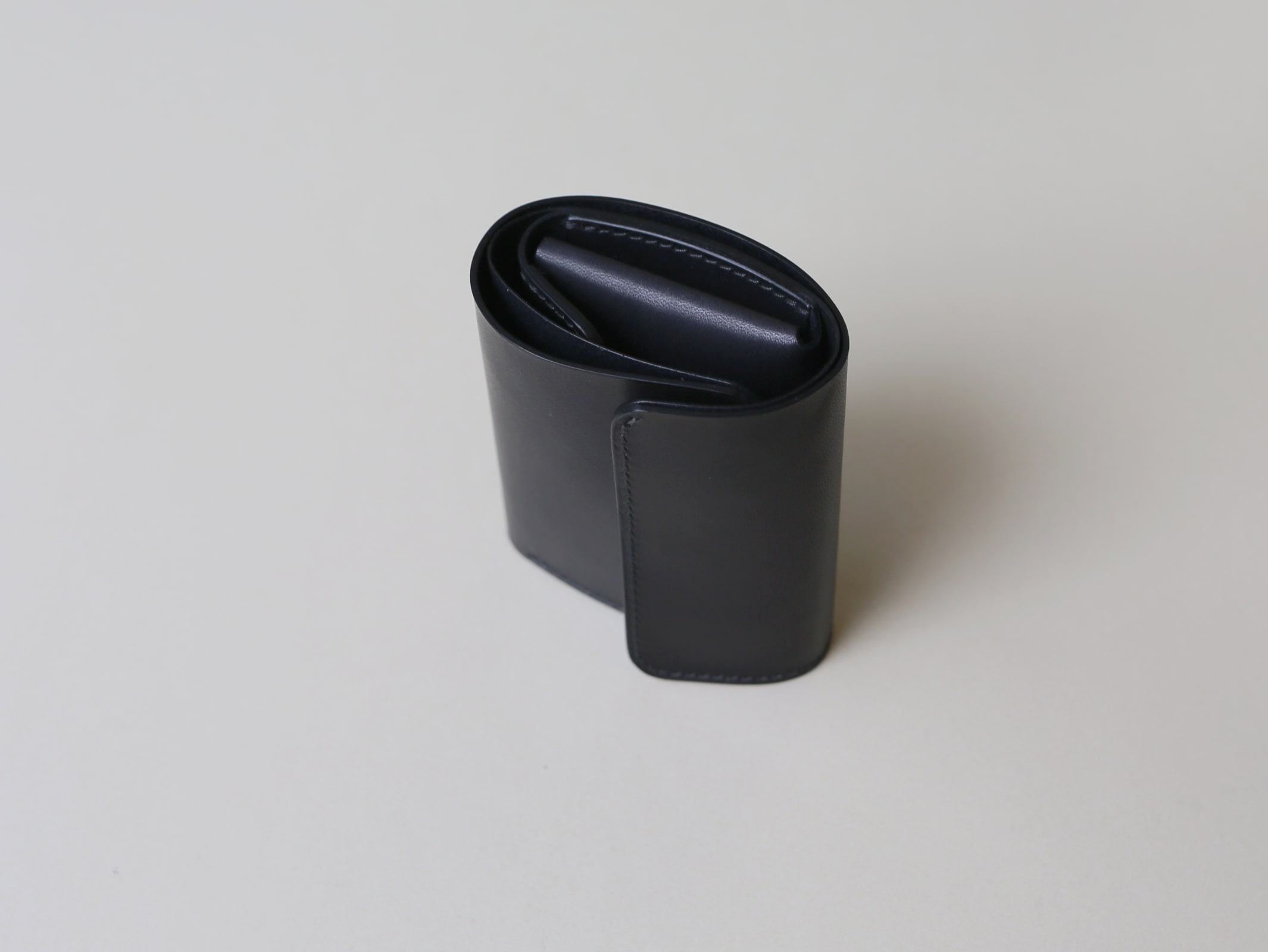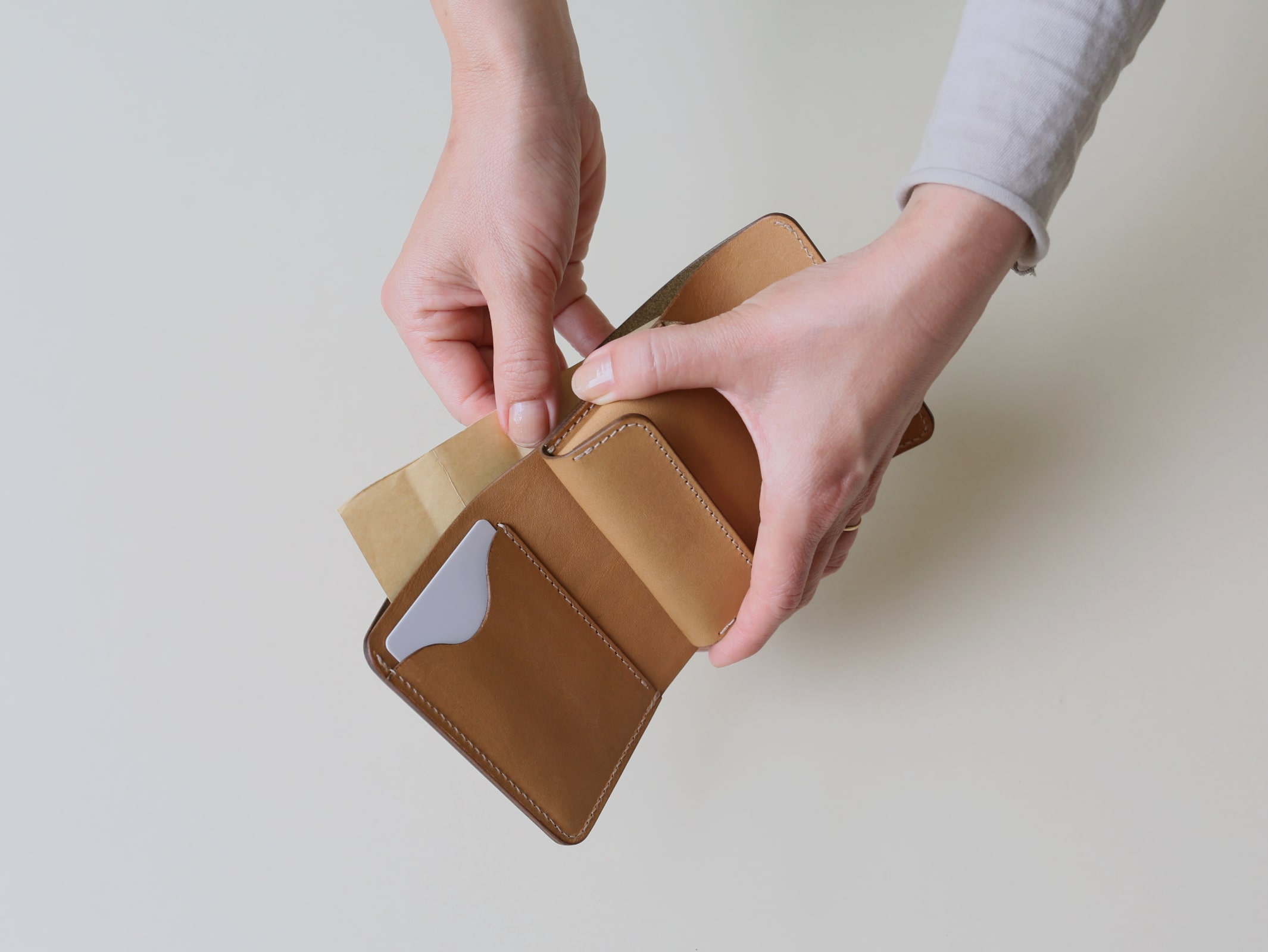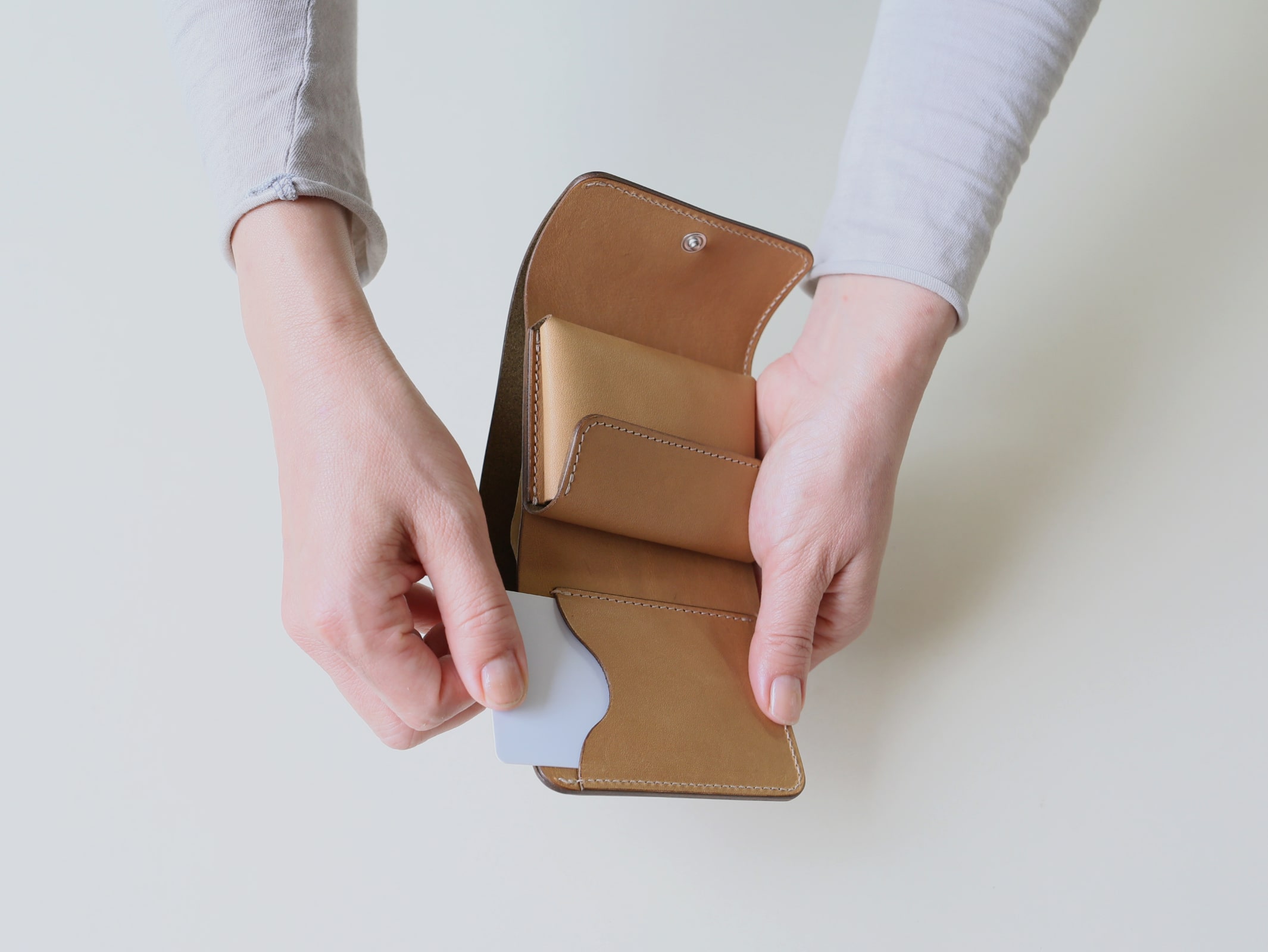 真ん中に小銭れを配置する事で、サイズ感や持った時の安定性、手の動作に沿った