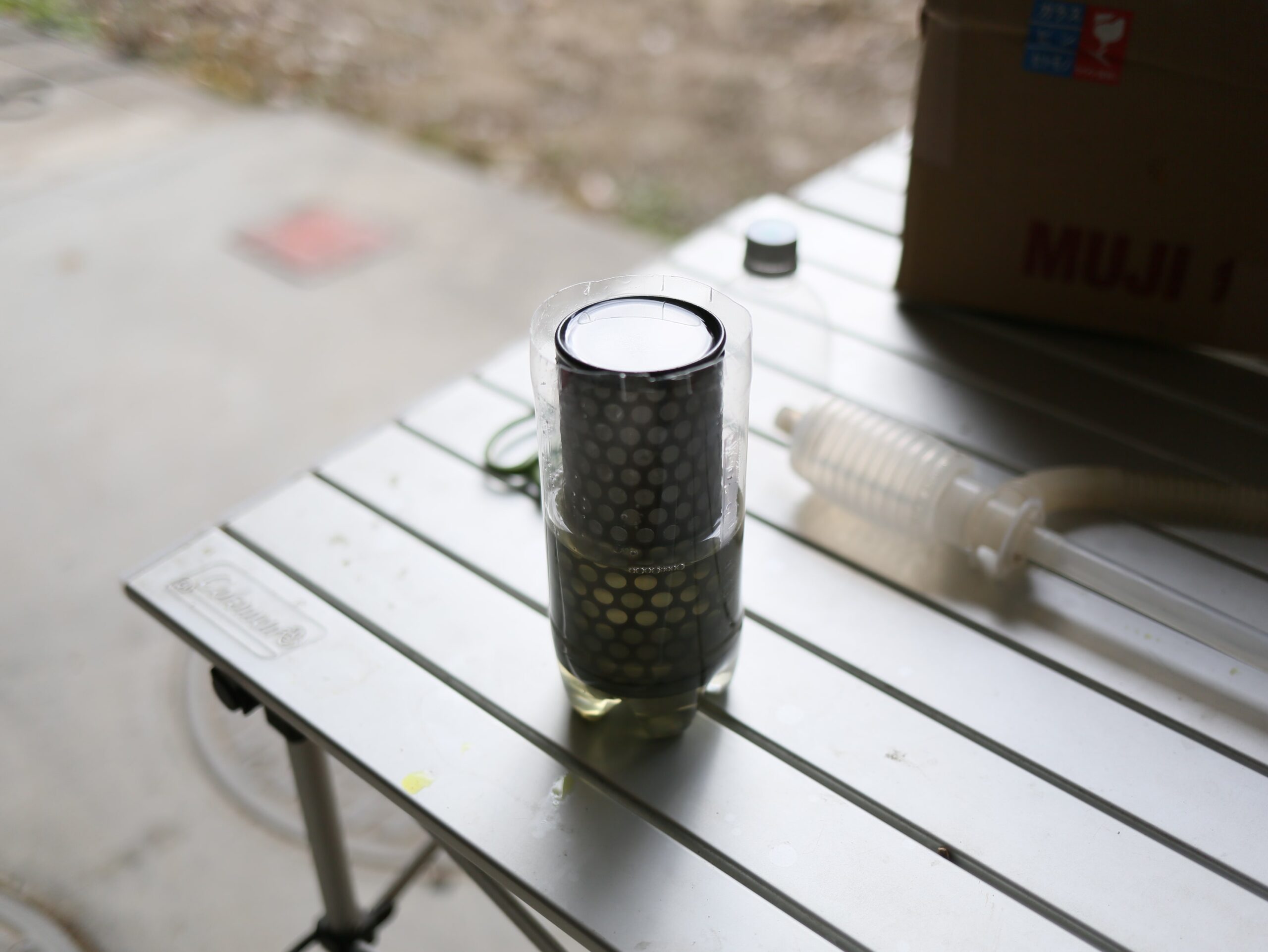 1Lのペットボトルを切り、灯油につけて、目詰まりを取ります。この灯油はクリッカー内部の清掃に使います。